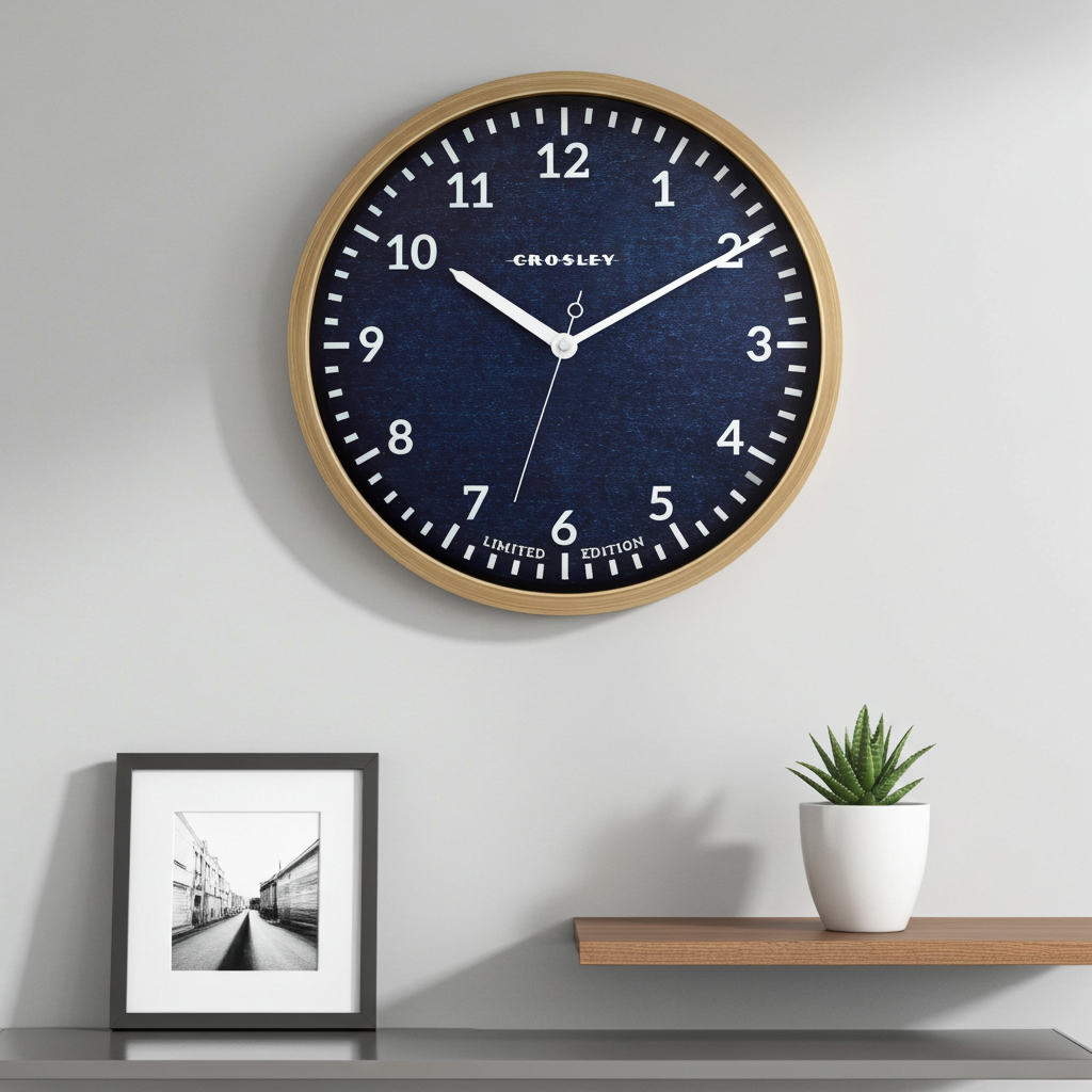 Enhance your home or workspace with a wall clock that blends casual texture with natural warmth. The Crosley Denim & Woodgrain Wall Clock features a denim blue textured dial and a realistic woodgrain frame, creating a relaxed yet stylish accent for your wall.