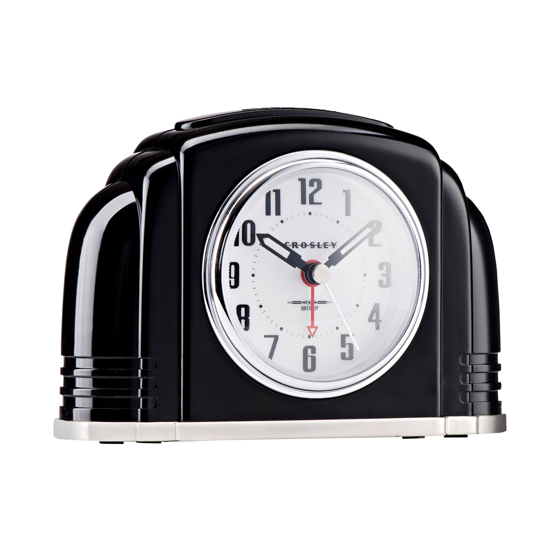 Crosley Art Deco Alarm Clock, Black "Bakelite" Style Finish, Chrome Metal Trim, Quiet Seconds Hand