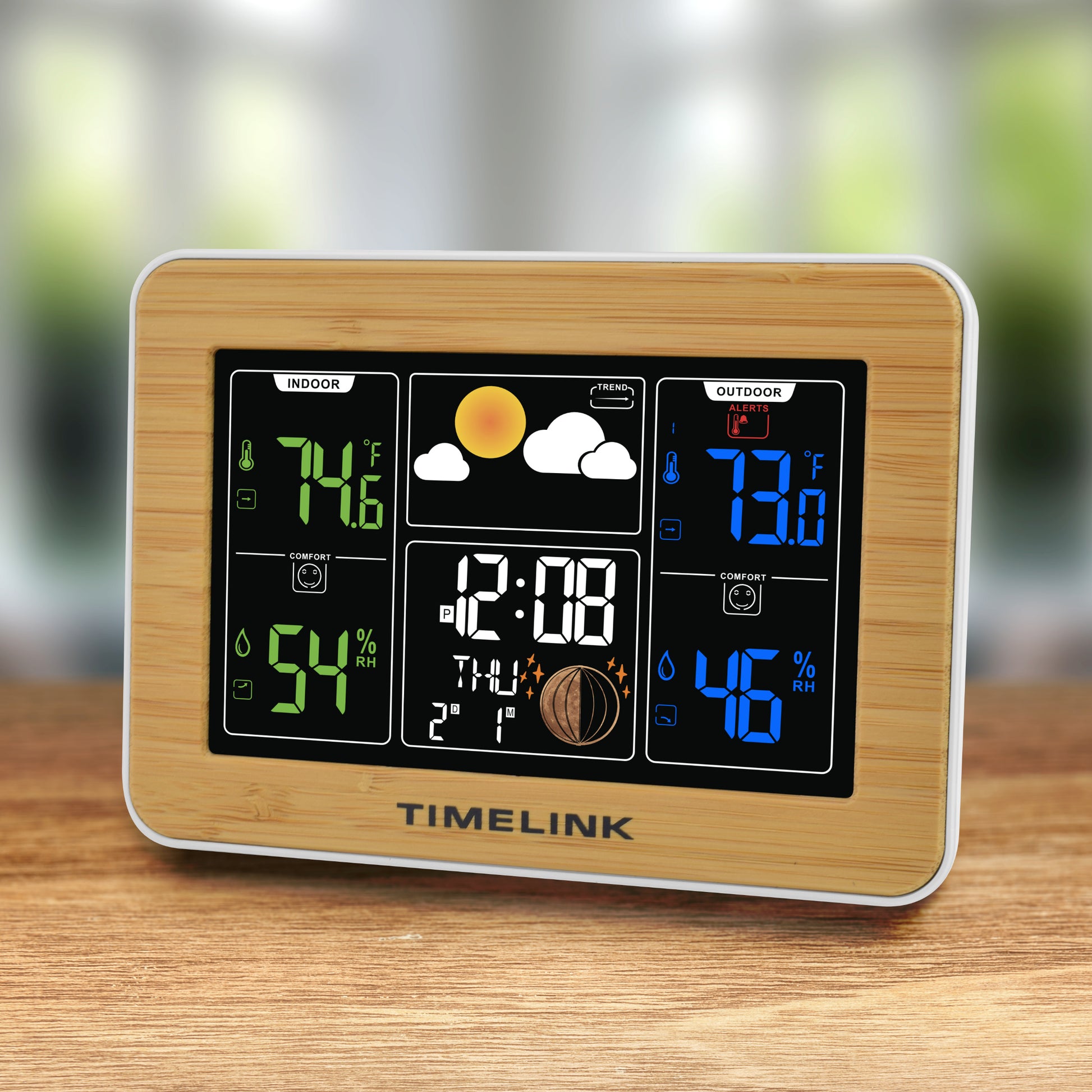 Enhance your home or workspace with a weather station that blends natural materials and smart daily information. The Timelink Bamboo Weather Station features a real bamboo frame, real-time and forecasted weather updates, calendar display, and built-in alarm clock for an all-in-one desktop essential.