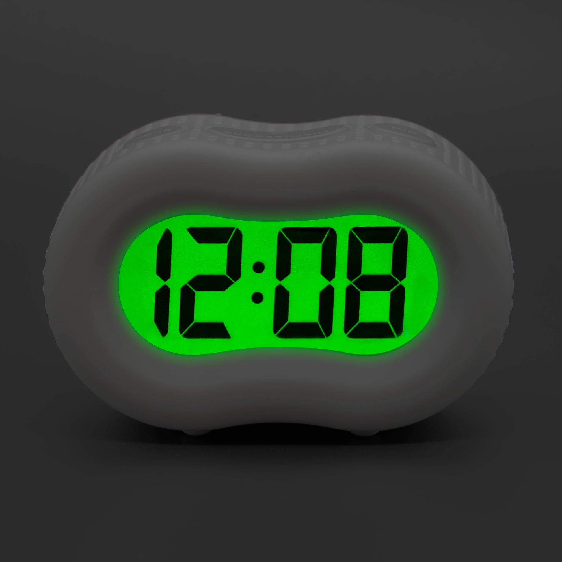 Timelink Alarm Clock, Large Time Display, Automatic Night Light, Grey Rubber Case