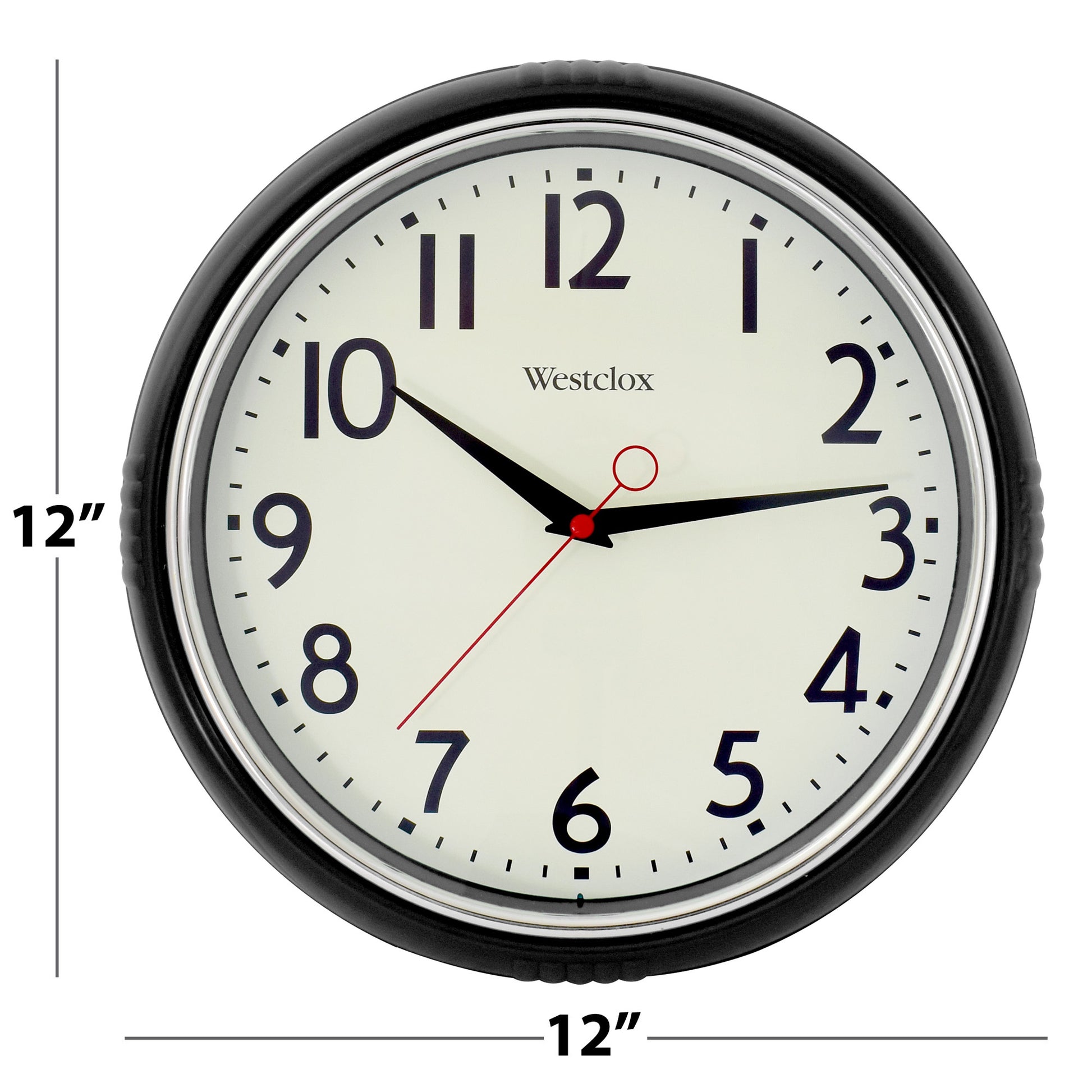Westclox 12" Black Retro Wall Clock – Gloss Finish with Chrome Bezel