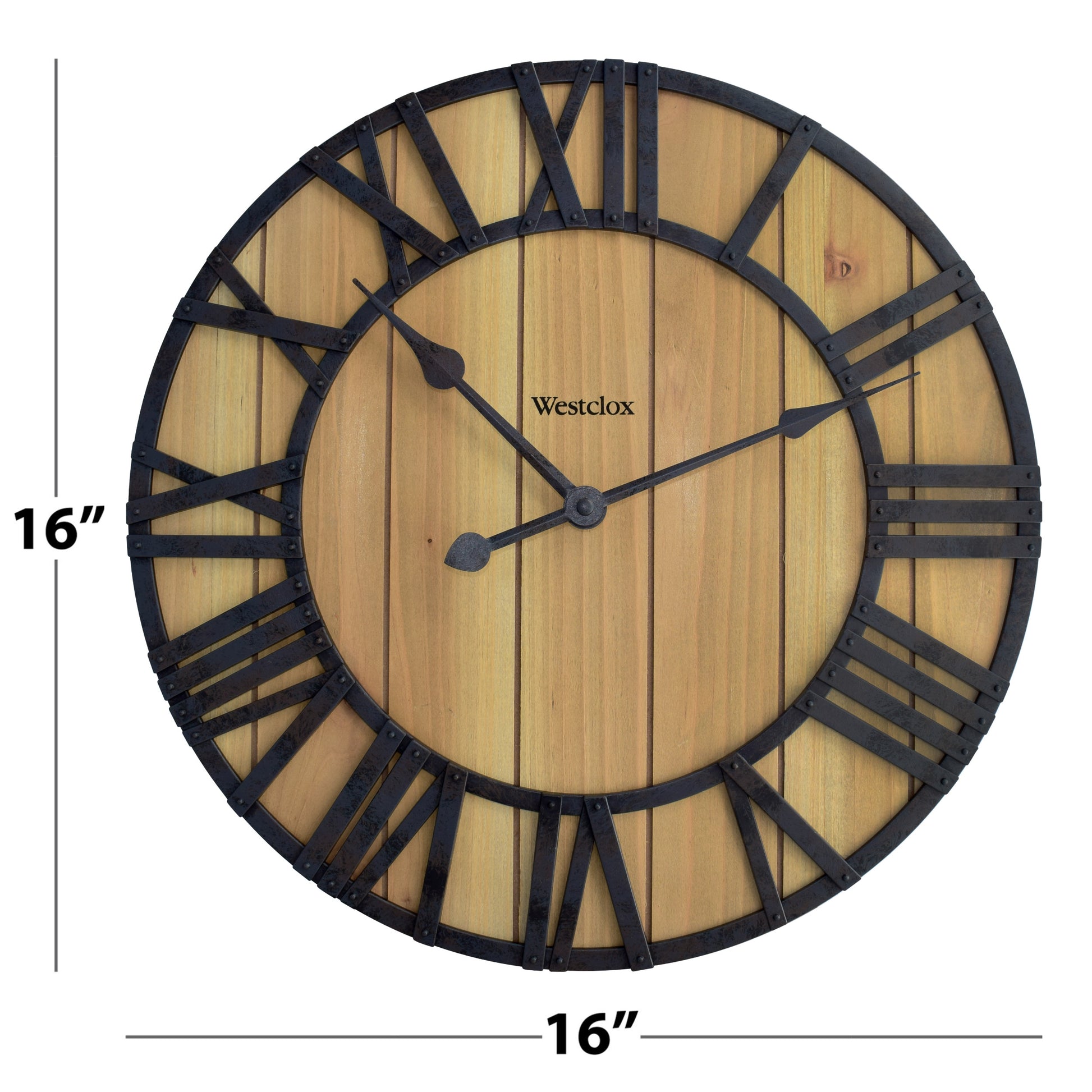 Westclox 16" Farmhouse Plank Wood Wall Clock – Distressed Roman Numerals