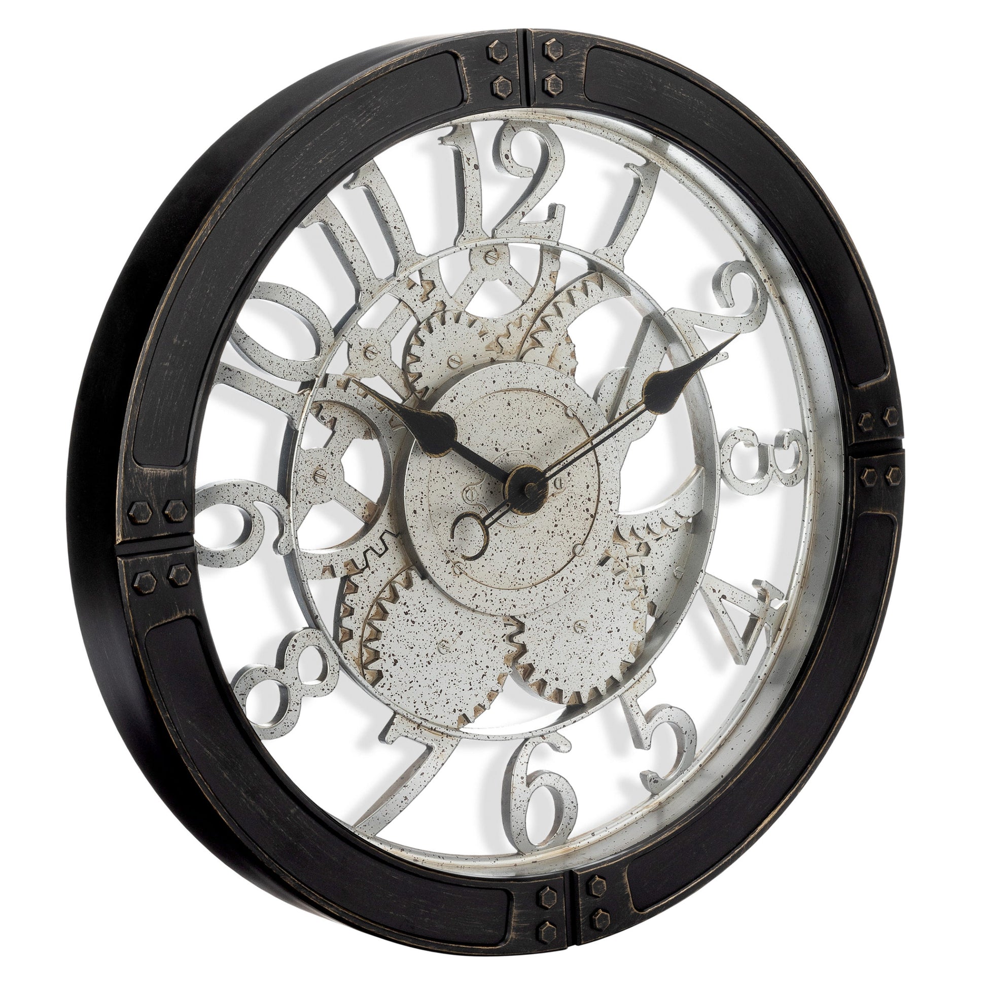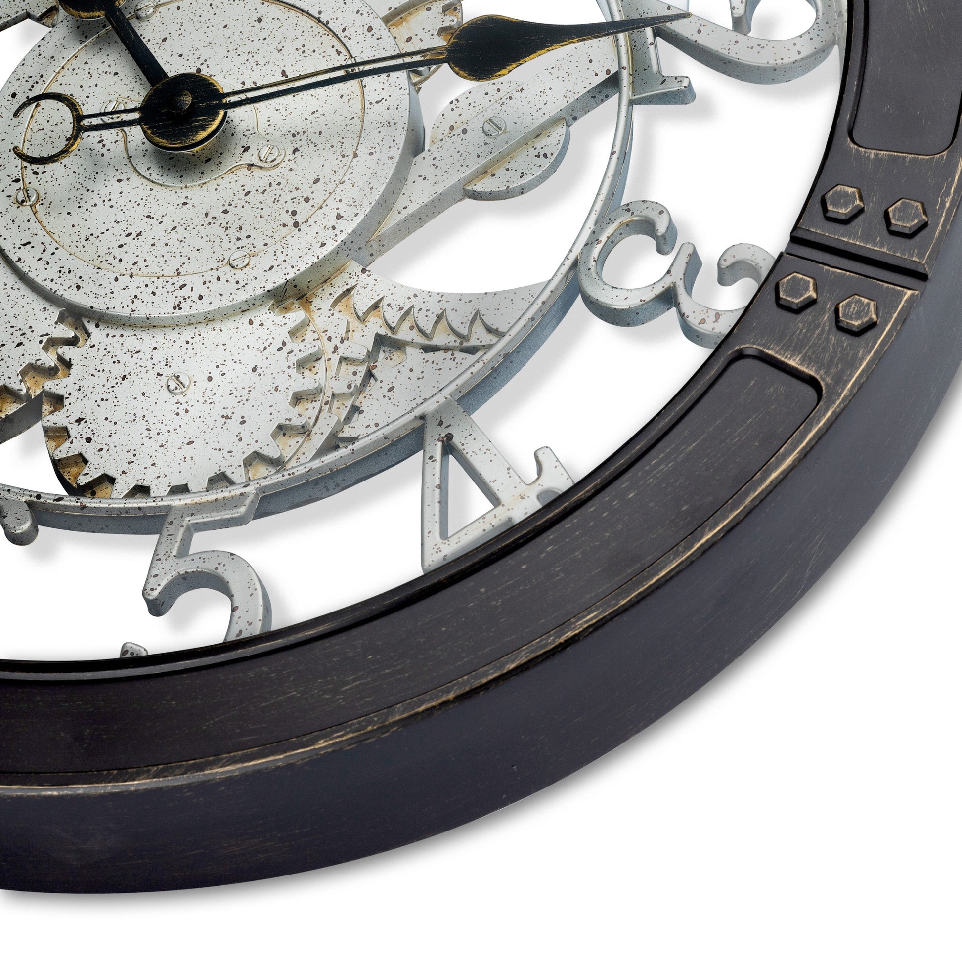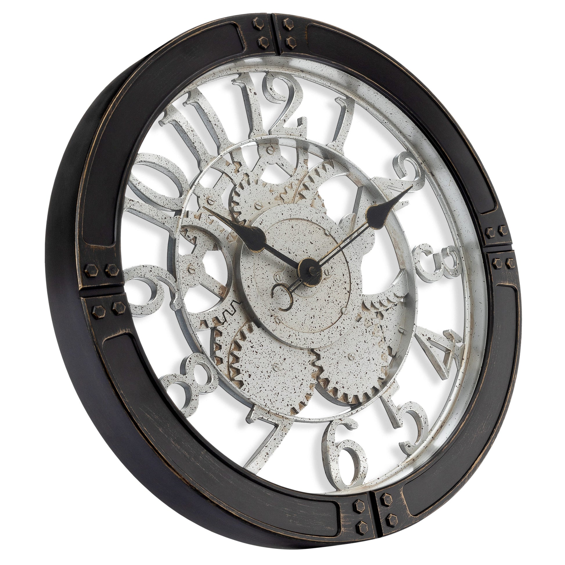 Raised gears and numbers with a silver patina finish add depth, texture, and an authentic industrial look.