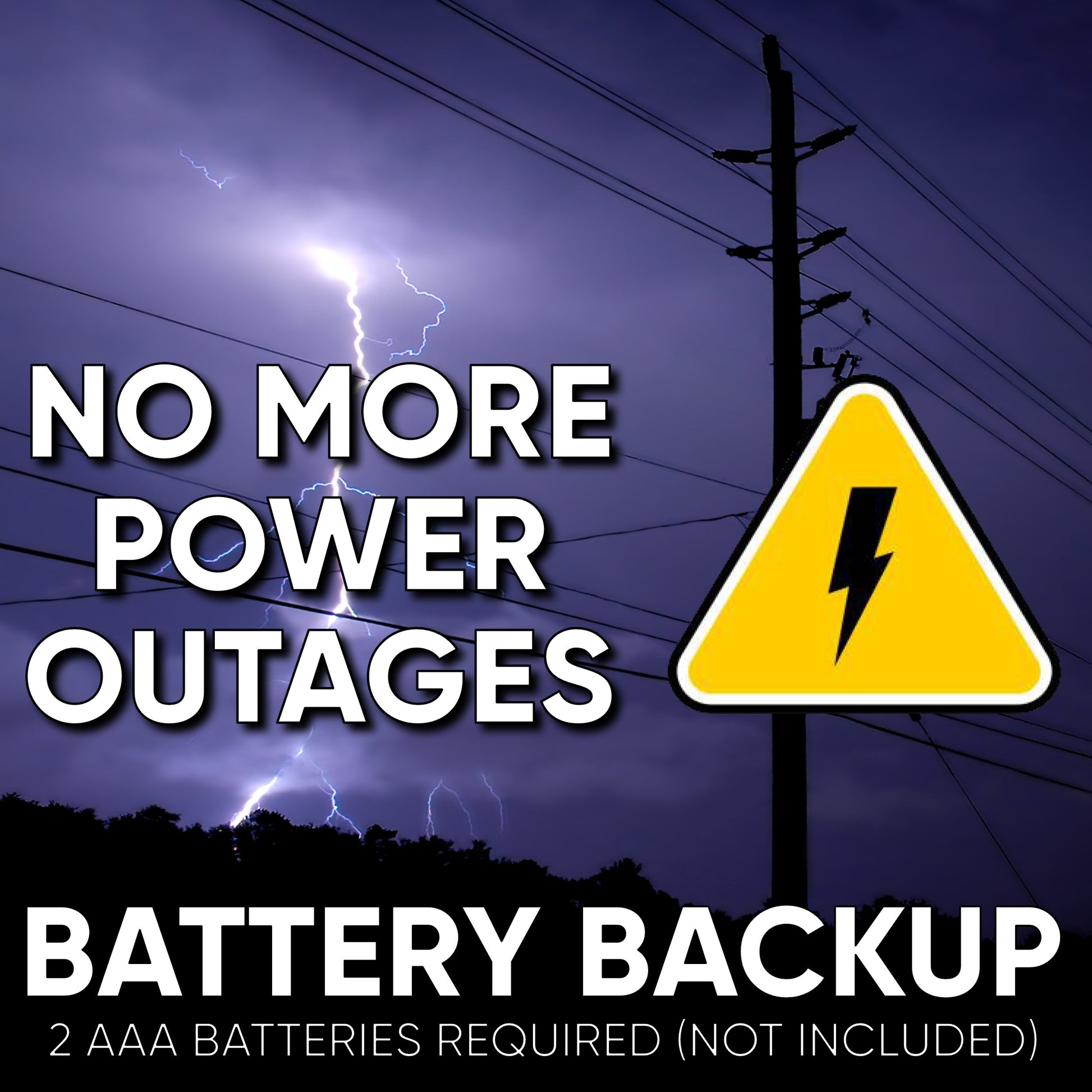 Designed for dependable performance, this clock includes a battery backup (2 AAA batteries not included) to retain alarm and time settings during power outages. It is electric powered using a USB power cord (adapter not included), offering flexible setup with standard power sources.