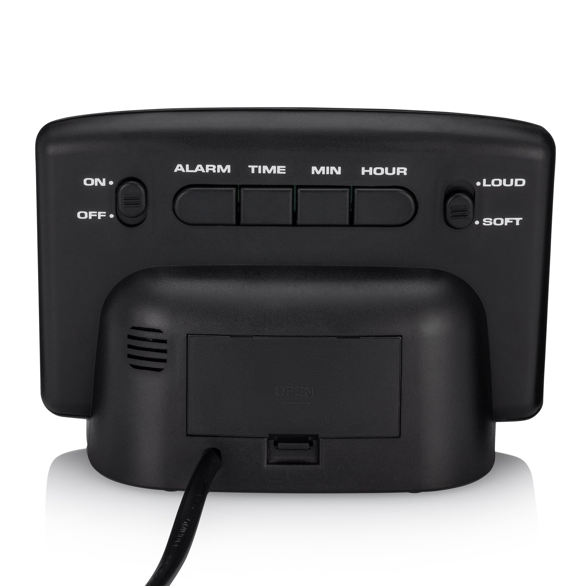 Adjustable alarm volume lets you choose high or low sound levels, while the oversized snooze button offers a convenient 9-minute snooze for relaxed mornings.