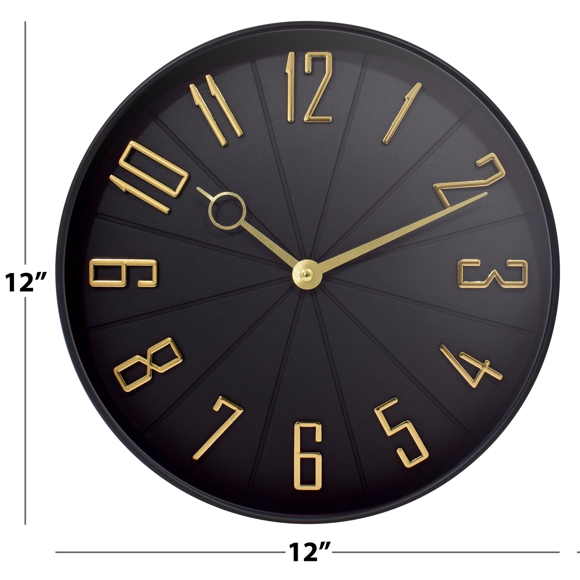 The Westclox Modern Black and Gold 12" Wall Clock is a stunning and functional addition to any contemporary space. With its sleek, round 12-inch design, this wall clock brings a touch of elegance and sophistication to your home or office decor. Its striking combination of a black face with gold accents offers a bold yet refined contrast, ensuring it stands out in any room. The minimalist approach to design allows this clock to complement a variety of interior styles, from modern to classic, making it a versatile choice for living rooms, bedrooms, kitchens, or even professional spaces.