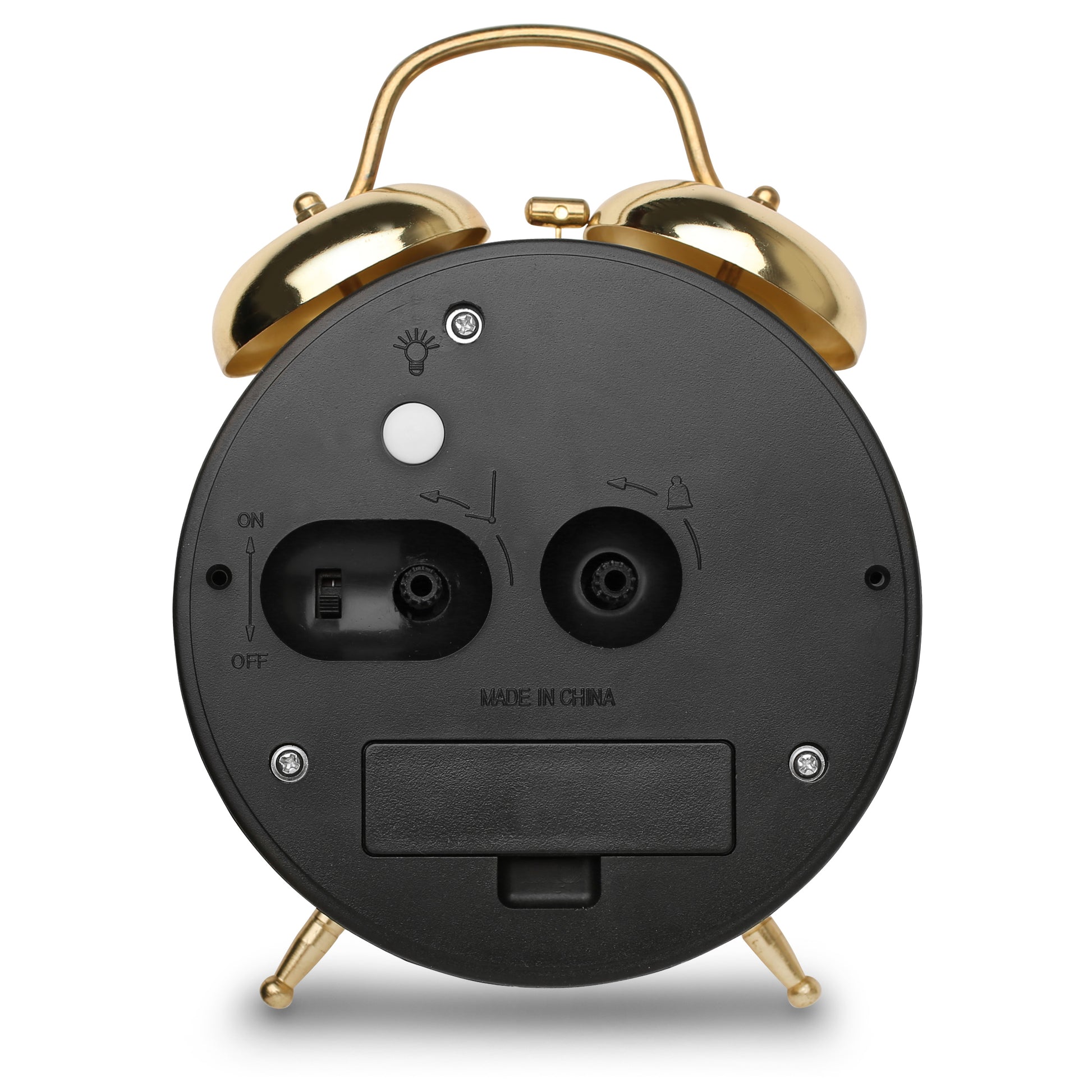 Crafted with a retro-inspired twin bell design, this clock evokes the nostalgic appeal of classic timepieces while incorporating the precision and reliability of a modern battery-operated quartz movement. Its compact 4.5-inch size makes it versatile for placement, whether on a nightstand or a shelf.