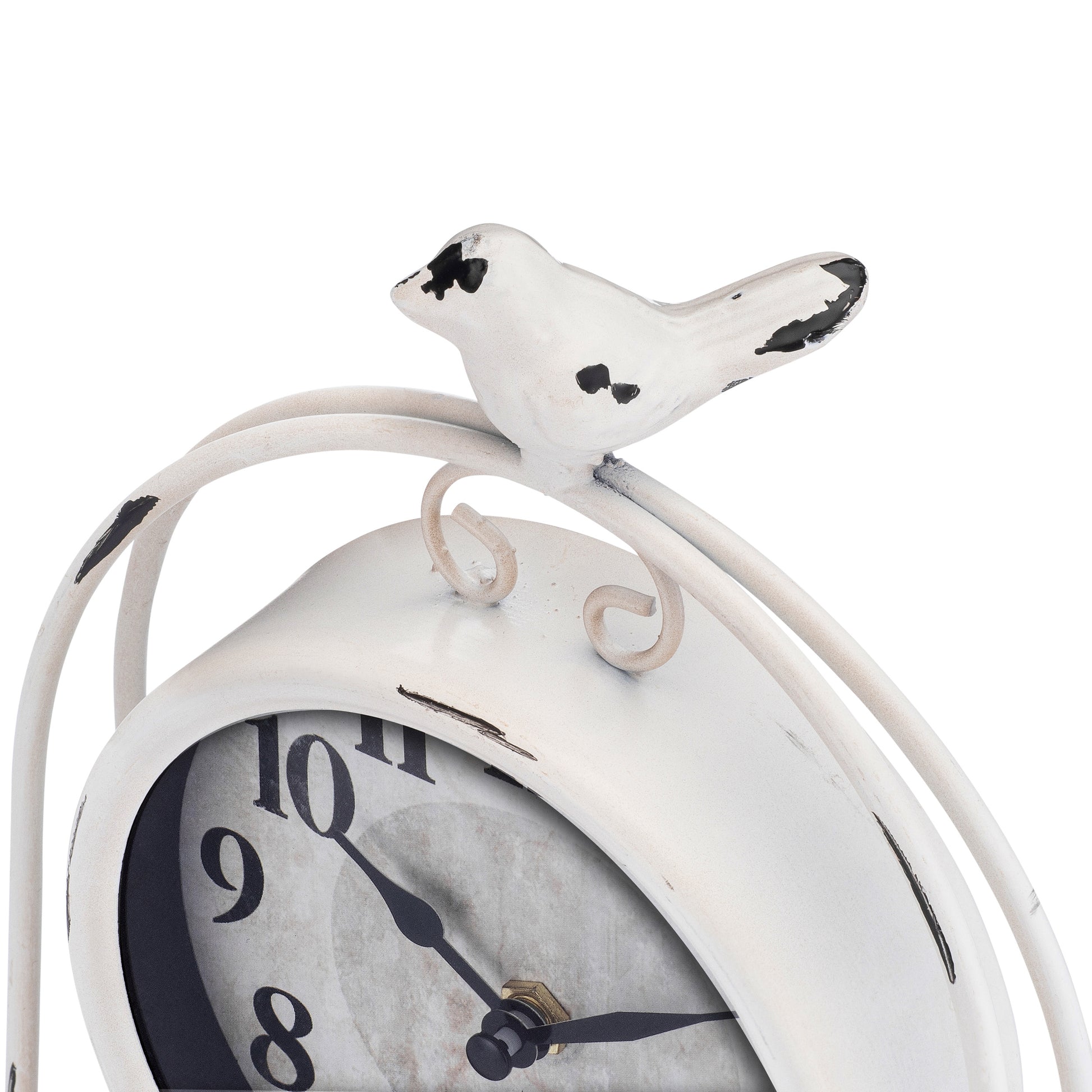 Whimsical, vintage, and classic. A perfect table timepiece for any office or home. Quartz analog movement. Large, readable face, glass lens.